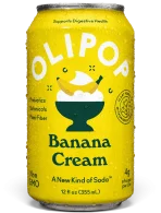 Ingredients: Carbonated Water, OLISMART (Cassava Root Fiber, Chicory Root Inulin, Jerusalem Artichoke Inulin, Nopal Cactus*, Marshmallow Root*, Calendula Flower*, Kudzu Root*), Banana Puree, Cassava Root Syrup, Lemon Juice, Double-Fold Vanilla*, Stevia Leaf*, Himalayan Pink Salt, Natural Vanilla Flavor, Natural Banana Cream Flavor *Extract